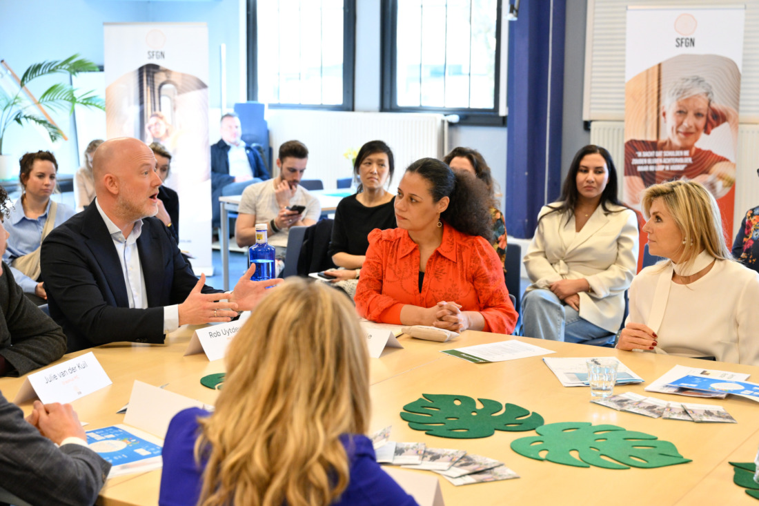 Op een zonnige ochtend op 25 februari zit Hare Majesteit Koningin Máxima – erevoorzitter van SFGN - aan tafel bij het Infoplein van welzijnsorganisatie SOL, in Huis van de Wijk Irene in Bloemhof, Rotterdam. Om haar heen zitten vrijwilligers en bewoners die zich dagelijks afvragen of er aan het einde van de maand genoeg geld overblijft. Voor boodschappen. Voor de energierekening. Voor nieuwe schoenen als een kind uit zijn kleren groeit.